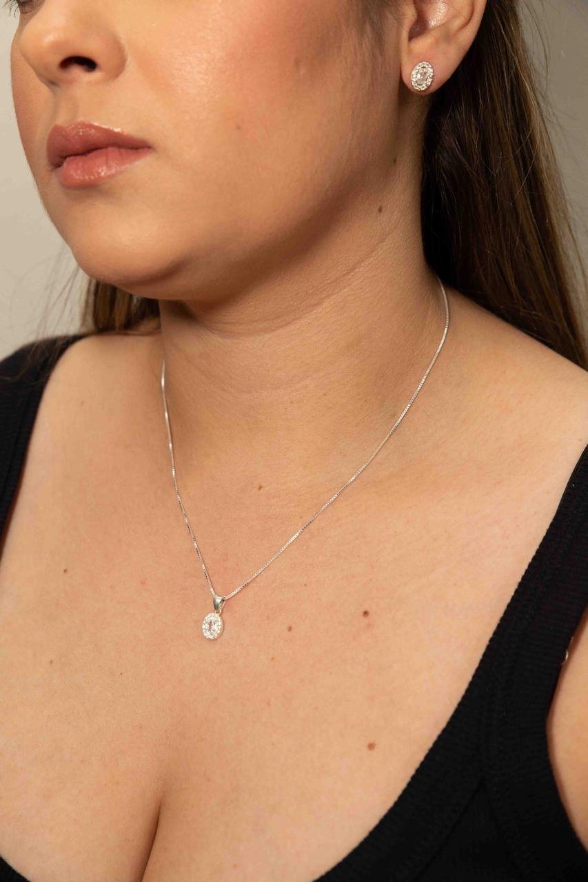 Conjunto cravejado cristal na prata925